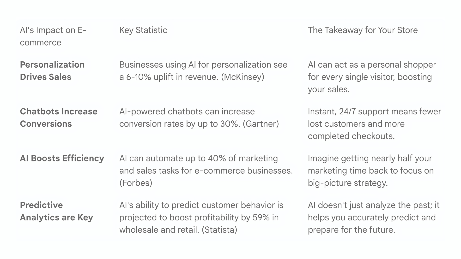 This isn't science fiction. This is the reality of Artificial Intelligence in e-commerce. AI is no longer a futuristic buzzword; it's an accessible, powerful toolkit that can help you optimize your Shopify store in ways that were previously unimaginable. It’s about replacing guesswork with data-driven precision and freeing up your most valuable resource—your time—to focus on what you love.