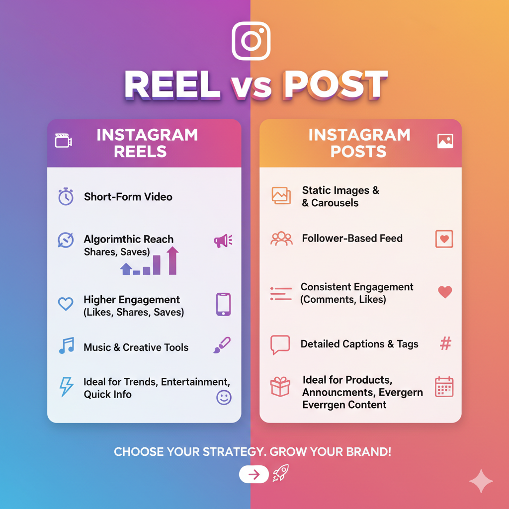 The Instagram Reel vs Post debate centers on two distinct content types, each with its own strengths: